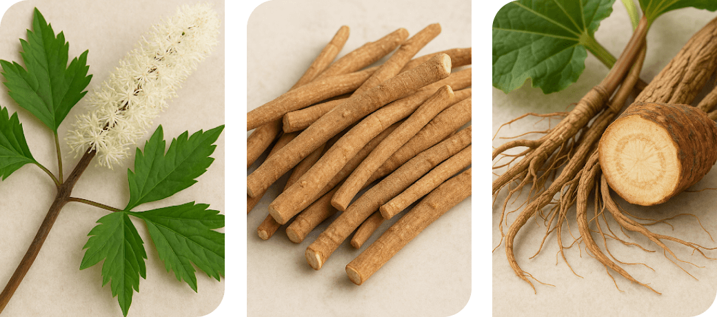Research: RDBDPCT | 100 perimenopausal women | 300 mg of ashwagandha | Improved overall symptoms, enhanced quality of life, increased estradiol, and reduced FSH and LH levels (Gopal 2019) |